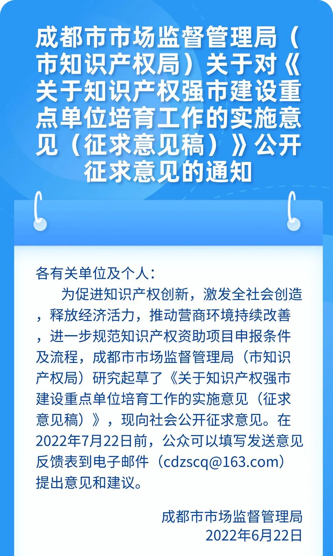 本意见自印发之日起施行,《成都市市场监督管理局关于成都市知识产权优势示范单位培育工作的实施意见》(成市监发〔2020〕68号)同时废止。